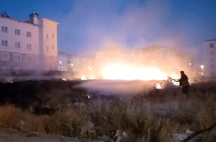 Kars'ta, konutların ortasında çıkan anız yangını itfaiye takımları tarafından kısa müddette denetim altına alındı....