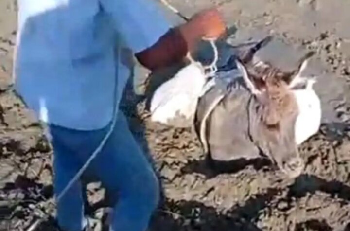 Kars'ın Akyaka ilçesinde çamura saplanan bir eşek, köylülerin yaptığı kurtarma operasyonuyla çamurdan çıkarıldı.