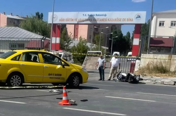 Ağrı'da bir motosikletin ticari taksiye çarpması sonucu motosiklet şoförü ve eşi ağır yaralandı, hastanede...