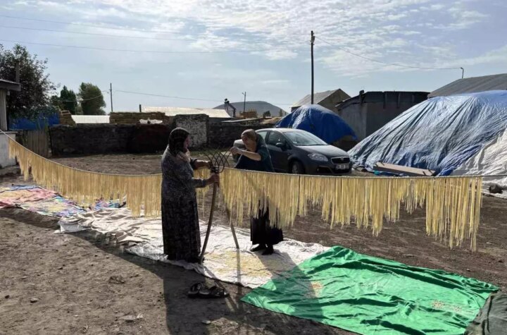 Kars'ta bayanlar, kış ayları için imece adabıyla erişte keserek hem klâsik bir dayanışma sergiliyor...